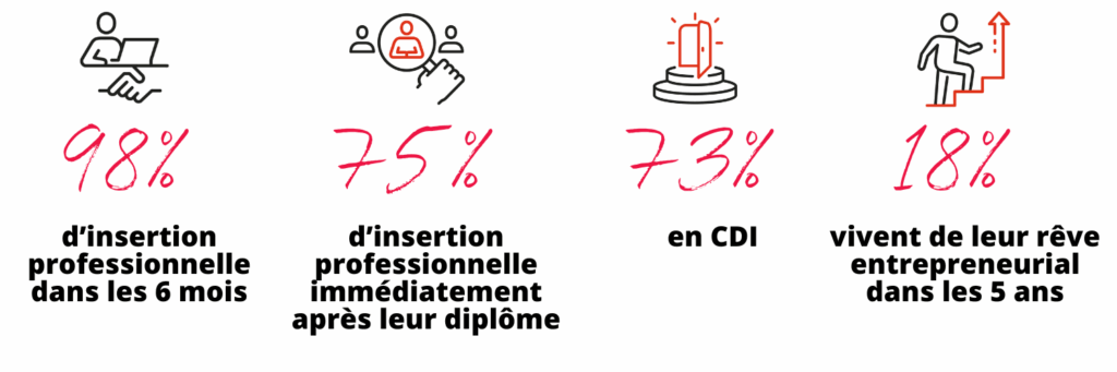 L’hybridation de vos compétences à la fois opérationnelles et stratégiques, votre savoir-être sont activement recherchés par les recruteurs qui reconnaissent l’excellence de nos cursus.
