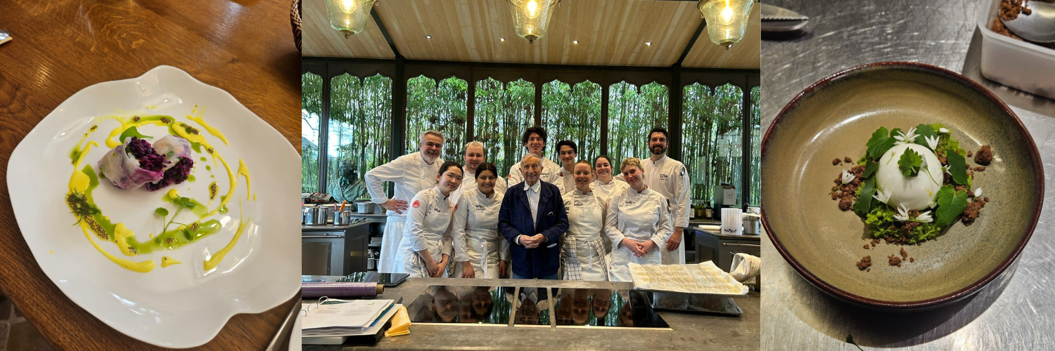 Notre mois de mise en situation professionnelle à Eugénie-les-Bains au sein d’un établissement de la Maison Guérard est un mois que j’ai adoré. Nous avons pu découvrir tout l’univers d’une cure et d’un palace et nous avons découvert une multitude de métiers. Les équipes ont été très accueillantes et nous nous sommes très bien sentis au sein de l’établissement. Nous avons passé une semaine avec le Chef Mack, riche en apprentissage, recettes et techniques culinaires.