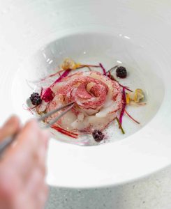 Notre Chef Florian Pansin joue avec une cuisine fine et créative, sublimée par des dressages précis, et des accords de saveurs équilibrés, en somme : une vraie et goûteuse cuisine de saison !