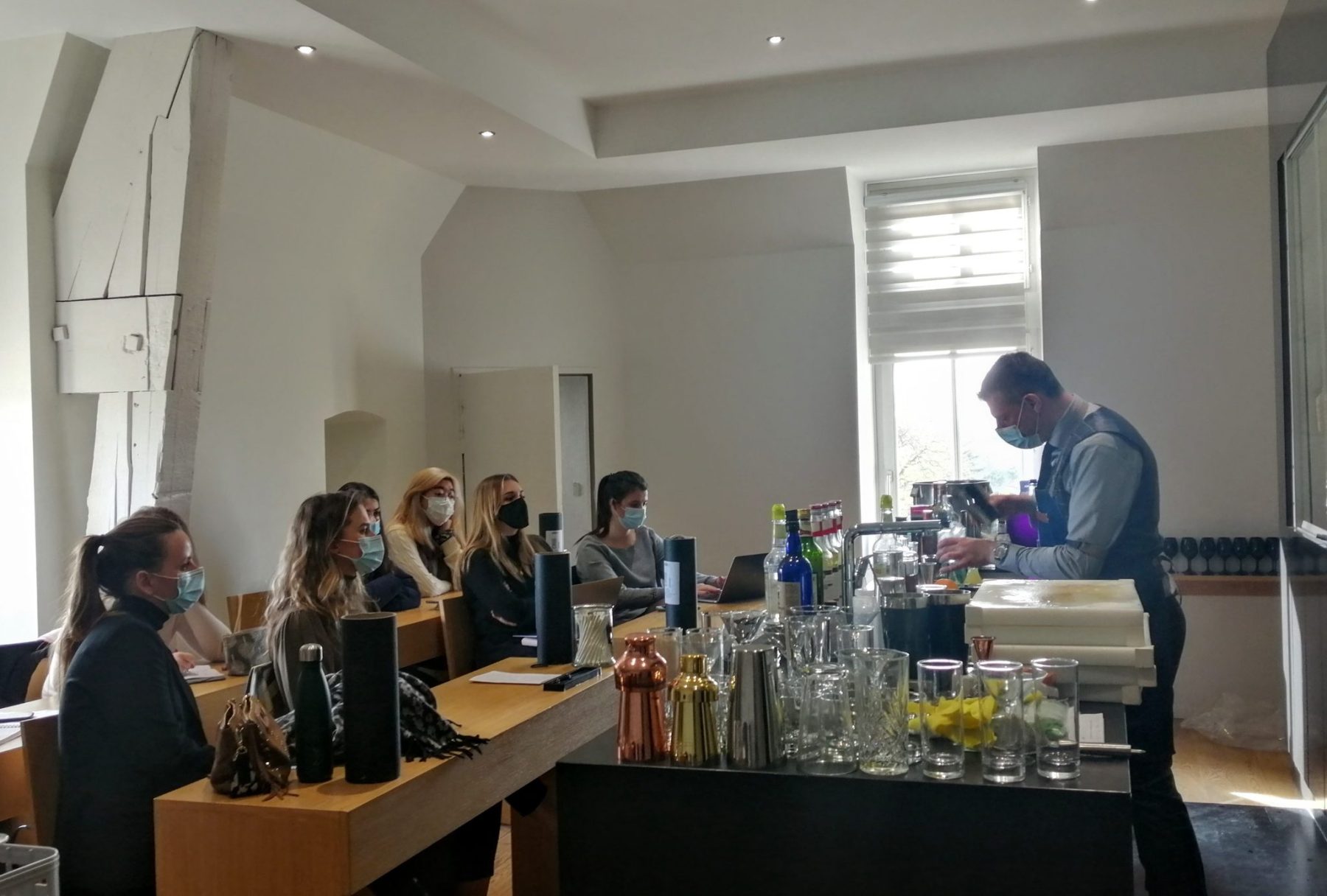 La situation sanitaire actuelle nous amène à repenser le format des cours et projets proposés à nos étudiants. Notre école bénéficiant d’une dérogation de la part du rectorat pour poursuivre certains cours pratiques dans le strict respect des mesures sanitaires, nos équipes pédagogiques ont eu l’idée de mettre en place un workshop sur-mesure basé sur la découverte de nouvelles disciplines et alliant théorie et pratique, pour nos étudiants de MSc in International Hospitality Management qui suivent actuellement leur 1er semestre de cours.