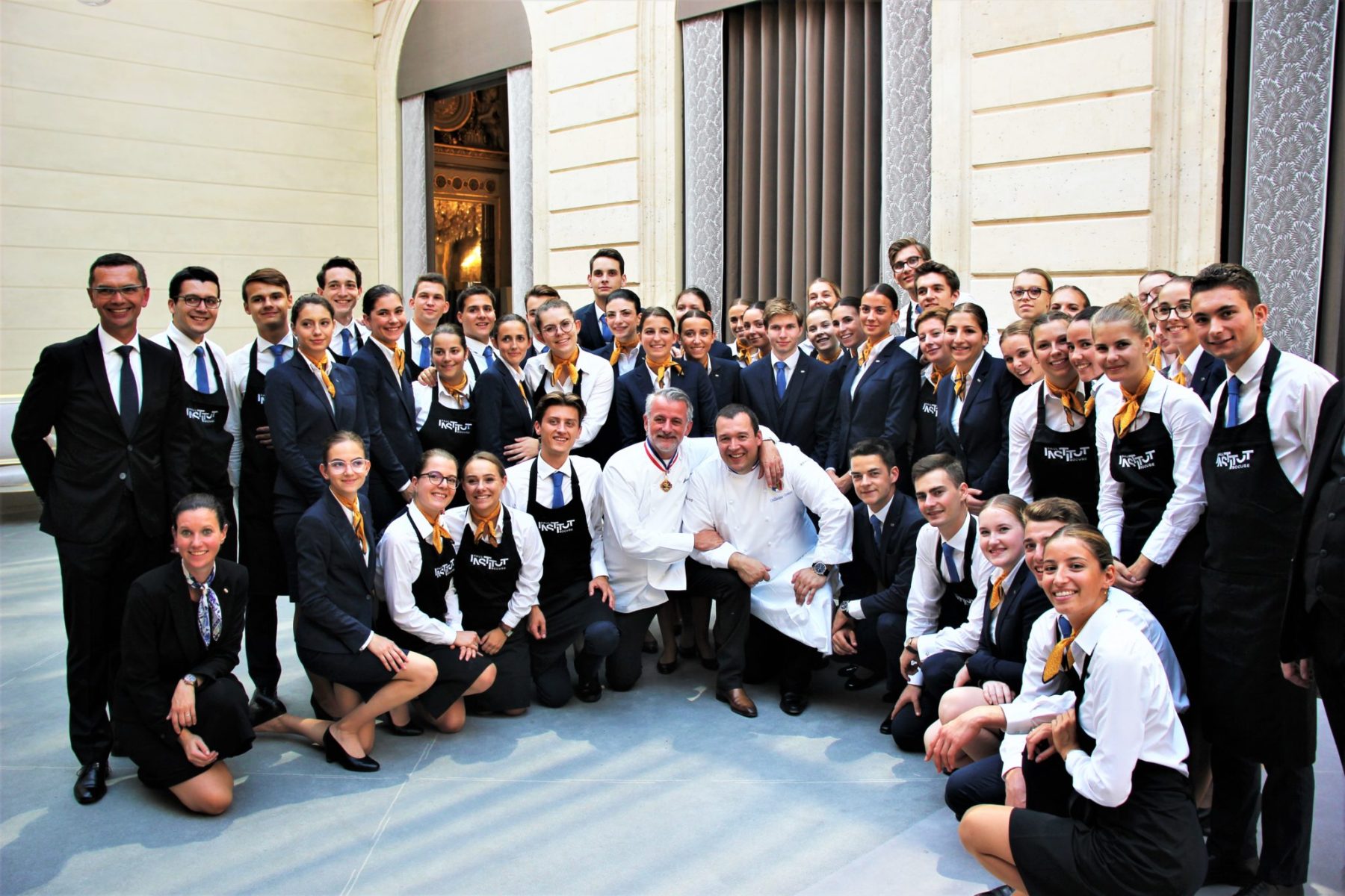 Nos étudiants en Management de l’Hôtellerie ont investi le palais de l’Elysée pour assurer le service du Déjeuner des grands Chefs, organisé en amont du Bocuse d’Or France afin d’honorer la mémoire de Monsieur Paul. Ce prestigieux déjeuner a réuni la crème de la crème de la gastronomie française, de grands chefs étoilés, mais aussi les responsables des associations de cuisine française, quelques chefs étrangers et les sponsors qui aident à la réalisation de ce rendez-vous exceptionnel.