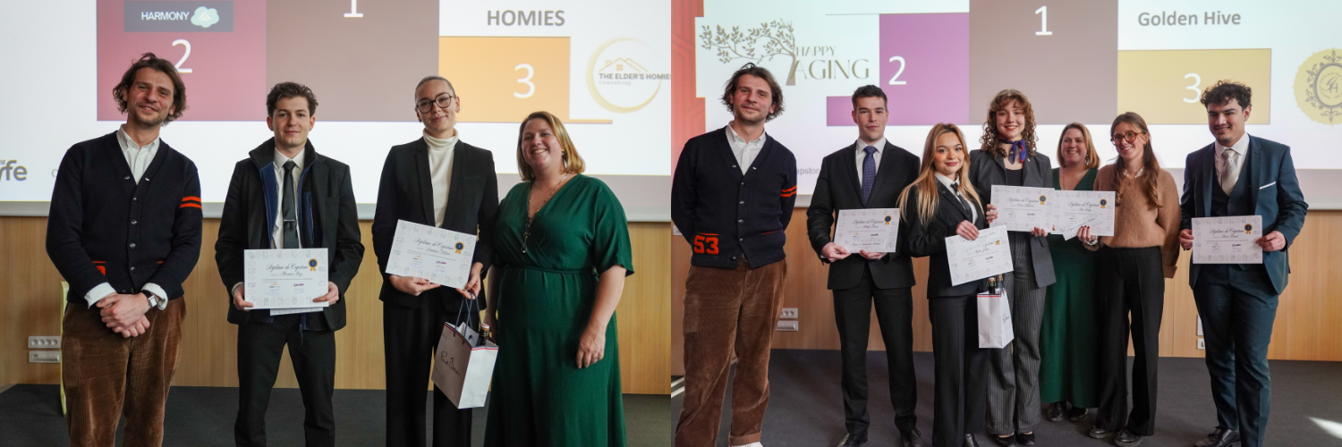 Nous tenons à féliciter chaleureusement Les Liens Dorés, vainqueurs du challenge sur l’optimisation du parcours client, ainsi que Vivéria, lauréats pour le développement d’une nouvelle offre premium. Leur engagement, leur créativité et la pertinence de leurs recommandations ont été particulièrement salués par le jury. Bravo à eux pour cette belle réussite et leur contribution à l’innovation dans le secteur de l’hébergement des seniors !
