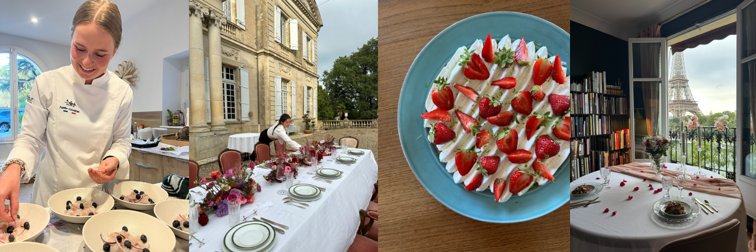 J’ai eu l’opportunité de créer Agathe Cuisine, mon entreprise de cheffe à domicile, pendant ma 3ème année du Bachelor Management International de l’Hôtellerie & de la Restauration. C’est une activité que j’ai développée en parallèle de mes études car j’appréciais cuisiner et que cela me permettait de me faire de l’expérience auprès de clients extérieurs à l’école. J’ai ainsi créé mon compte Instagram où je partageais mon quotidien, mes réalisations, mon organisation, et le bouche-à-oreille a fait le reste.