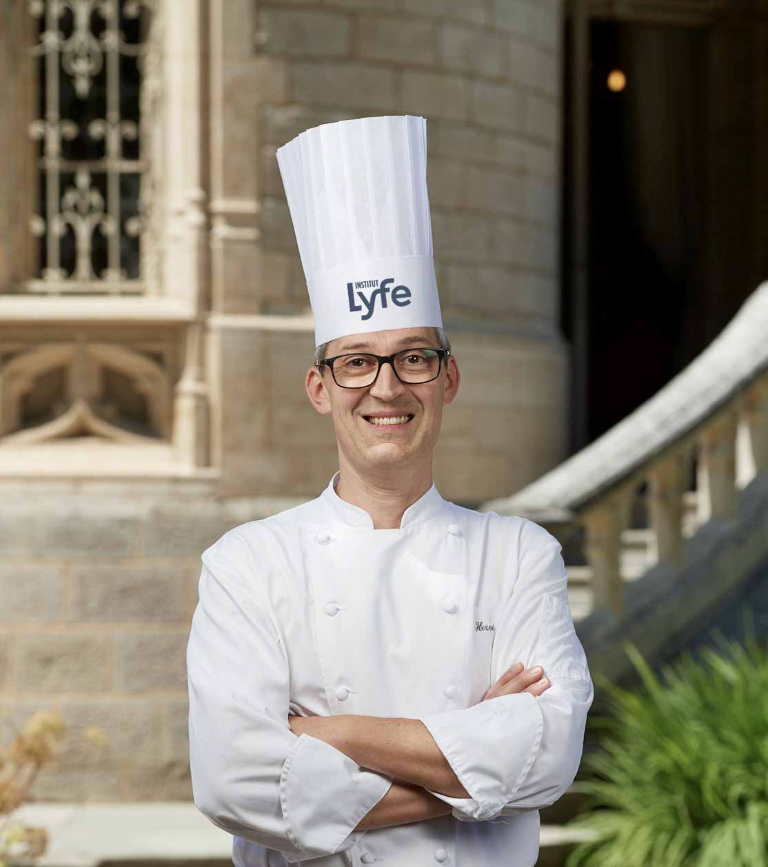 Formation en lycée hôtelier, 34 ans d’expériences dans différents établissements étoilés (Le Grand Monarque*, l’Auberge des Templiers*, La Clé des Champs…), 18 années au Relais & Châteaux Pierre ORSI, et plus de 10 ans à l’Institut Lyfe.